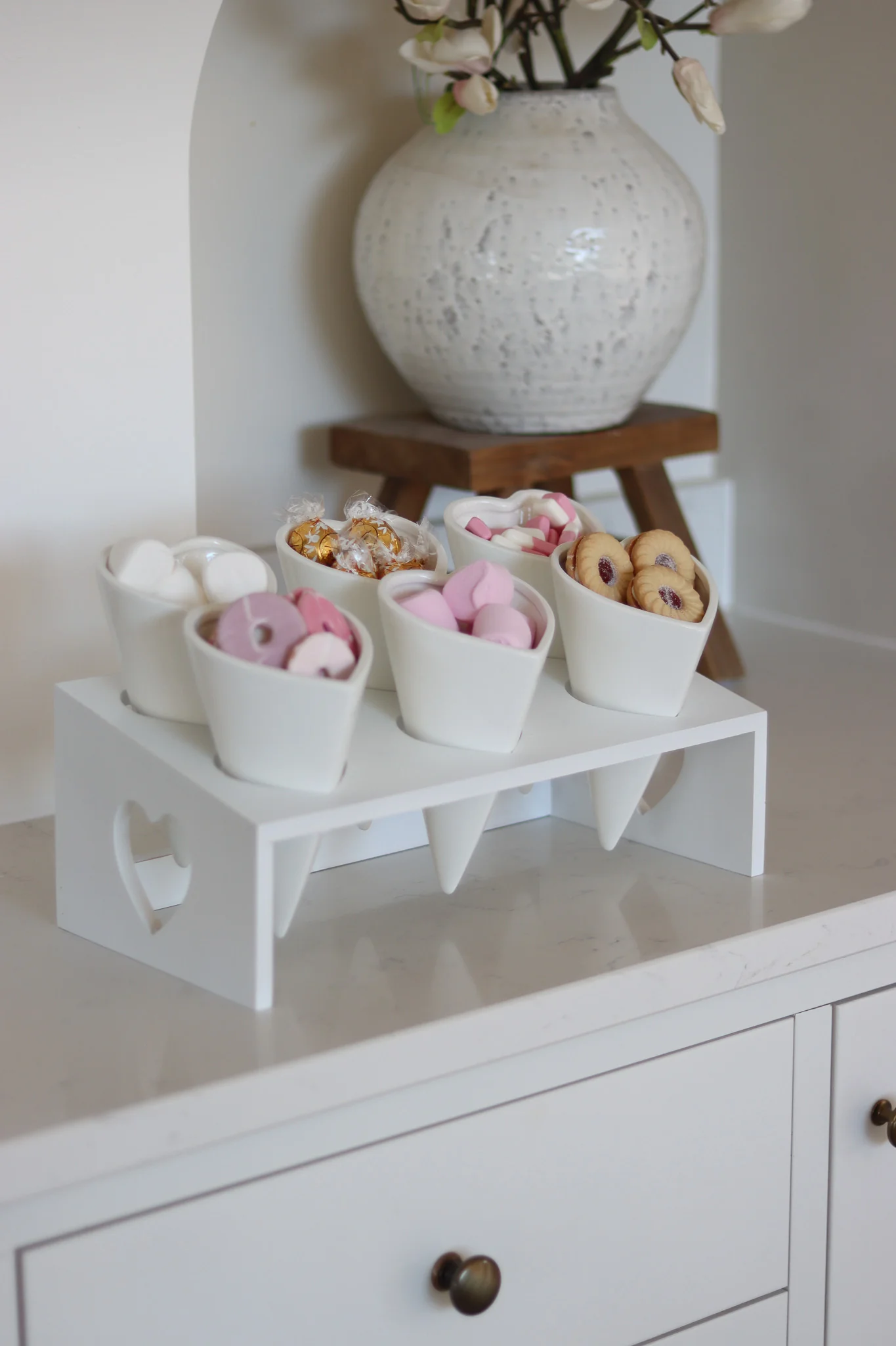 This white bamboo snacking station is a stylish and practical way to serve your favourite treats.