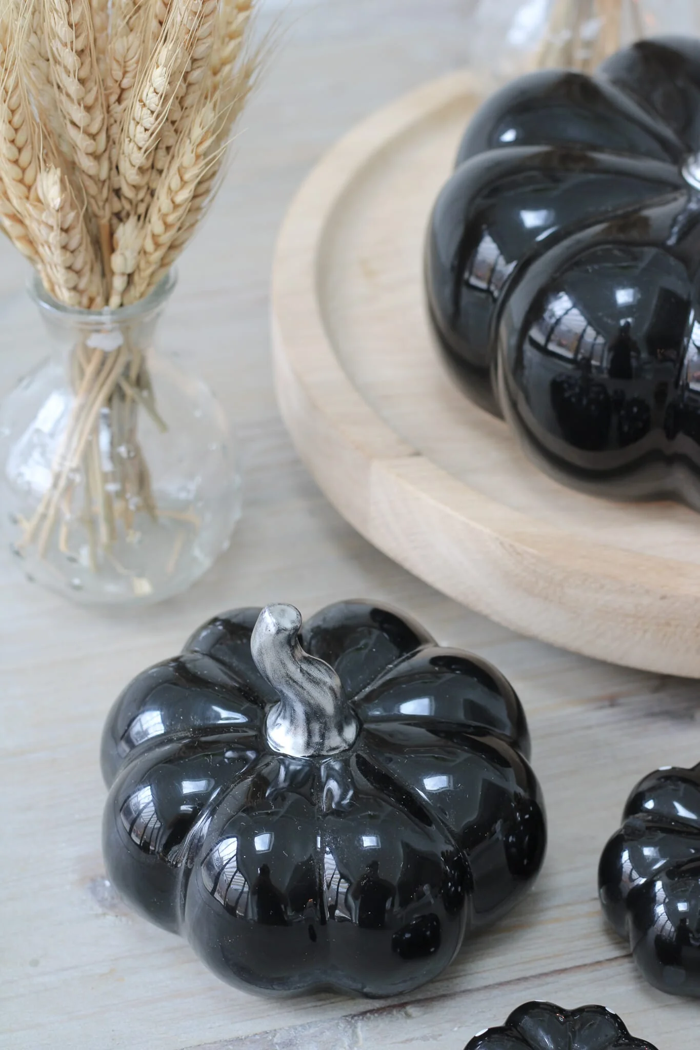 Embrace the charm of our Black ceramic pumpkins. This set of two small ceramic pumpkins is ideal for adding subtle accents to your home. Place them on your bookshelf, style them on your windowsill, or incorporate them into your autumn table decorations. These ceramic pumpkins beautifully capture the essence of autumn and effortlessly elevate your autumn home decor.