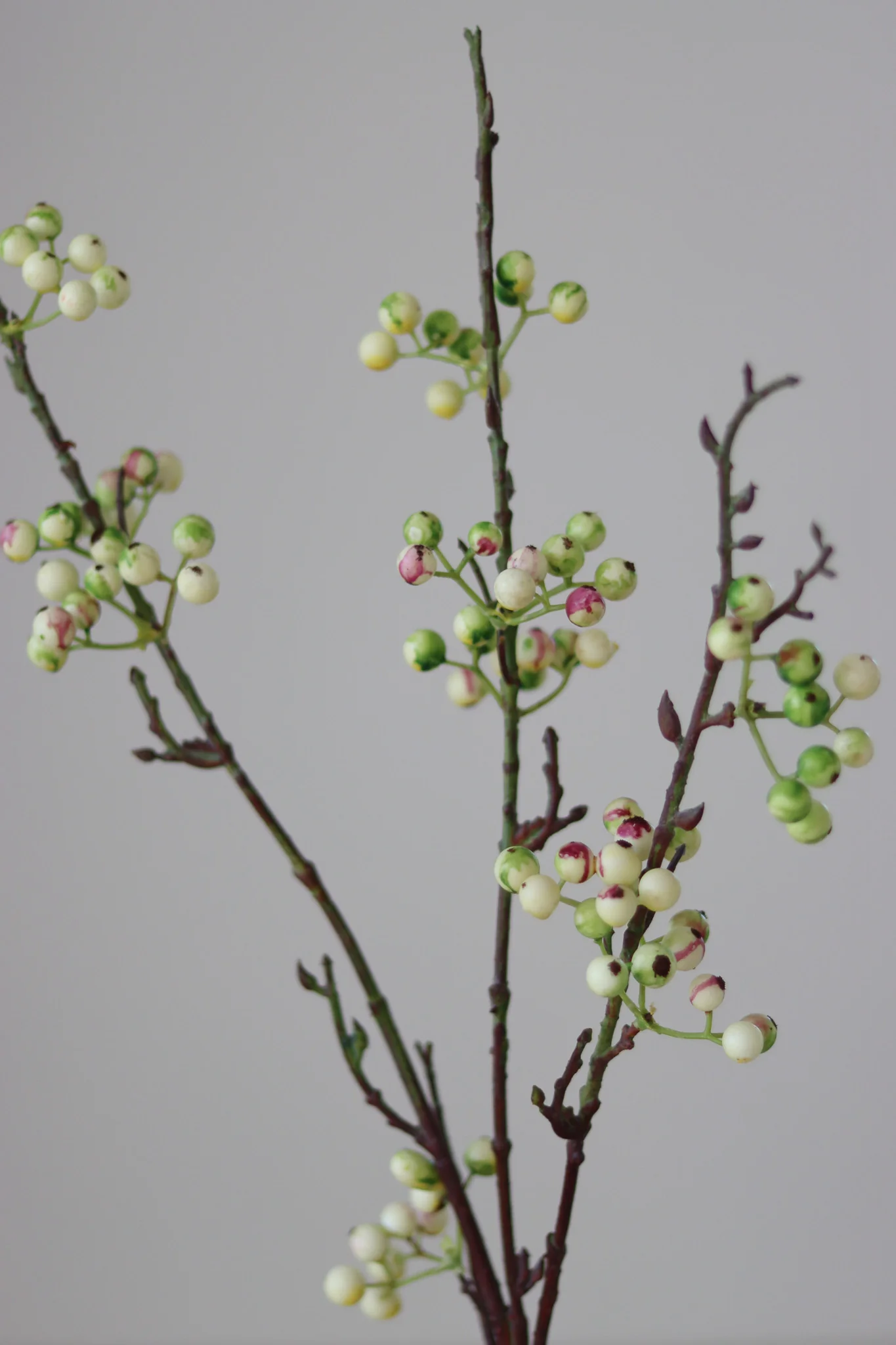 A fresh berry spray designed to add colour and texture to your home styling. These faux flowers work beautifully used on their own or layered into a larger arrangement, making them an ideal filler stem for seasonal displays.