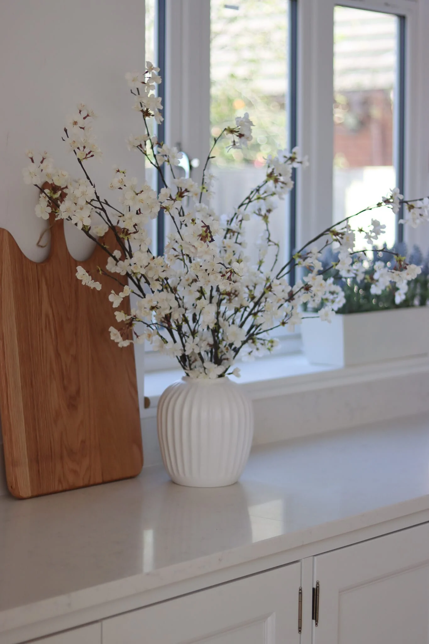 A faux cherry blossom stem designed to bring a soft, romantic feel to your home styling. Finished with delicate white blossoms and realistic branching, these faux flowers add lightness and movement to both seasonal and everyday displays.