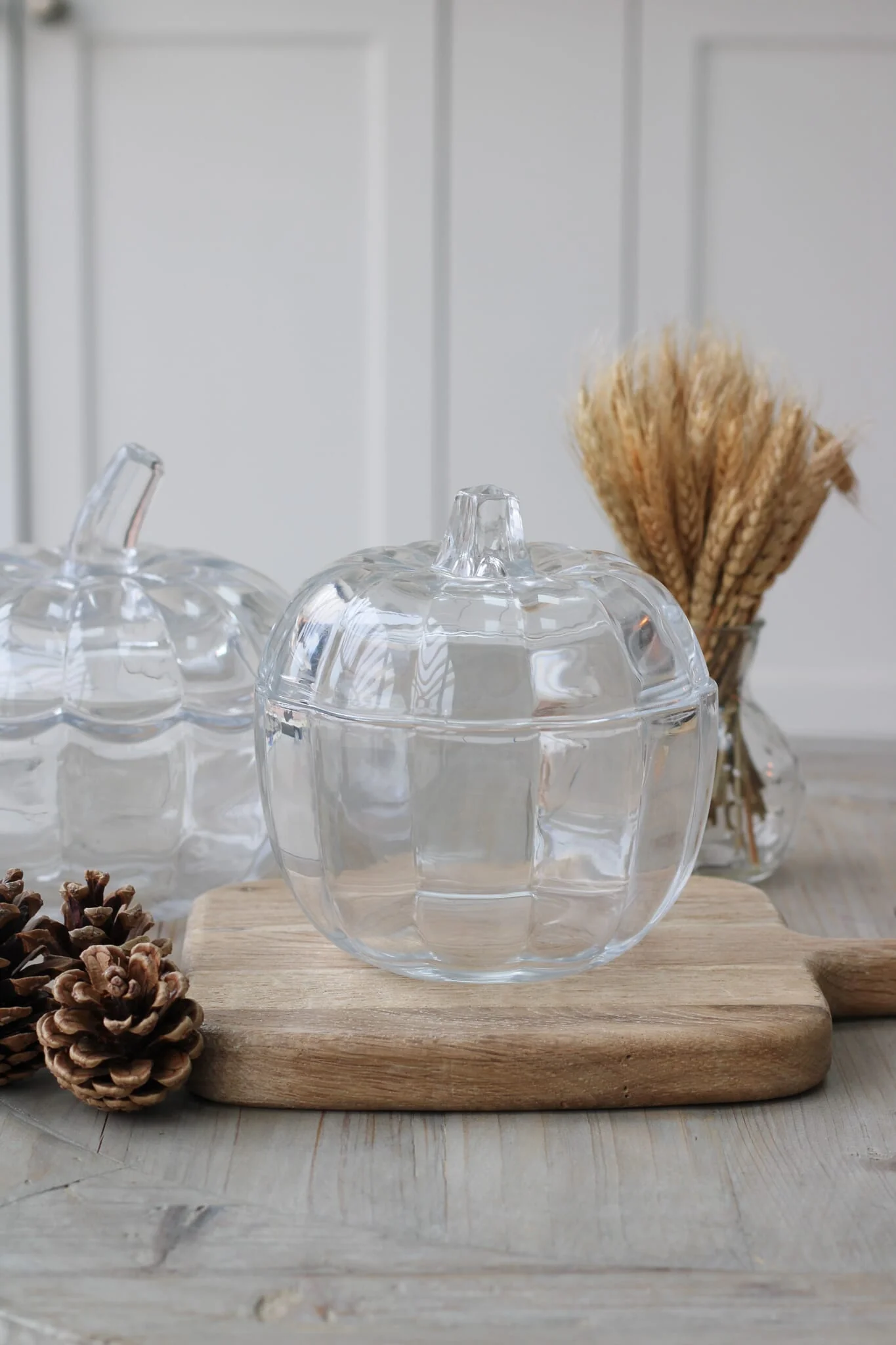 Introducing our Large Glass Lidded Pumpkin Jar, a versatile and charming addition to your home decor. This pumpkin-shaped jar offers both style and functionality, perfect for a variety of uses.