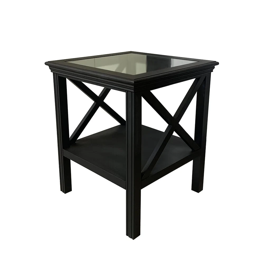 Black Glass Top Hamptons Side Table