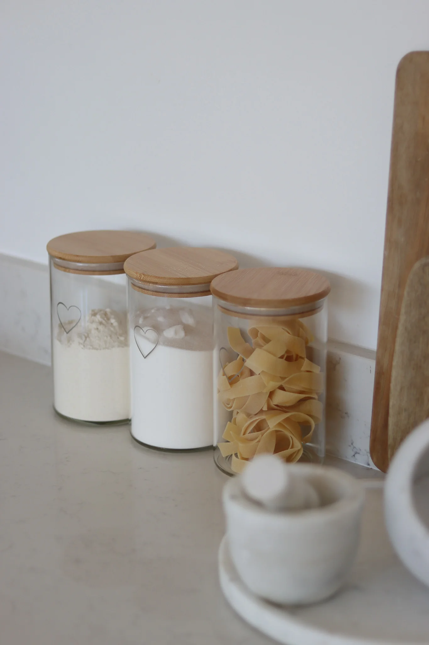 Set 3 Bamboo Storage Jars -Single Heart Natural lid 1000ml
