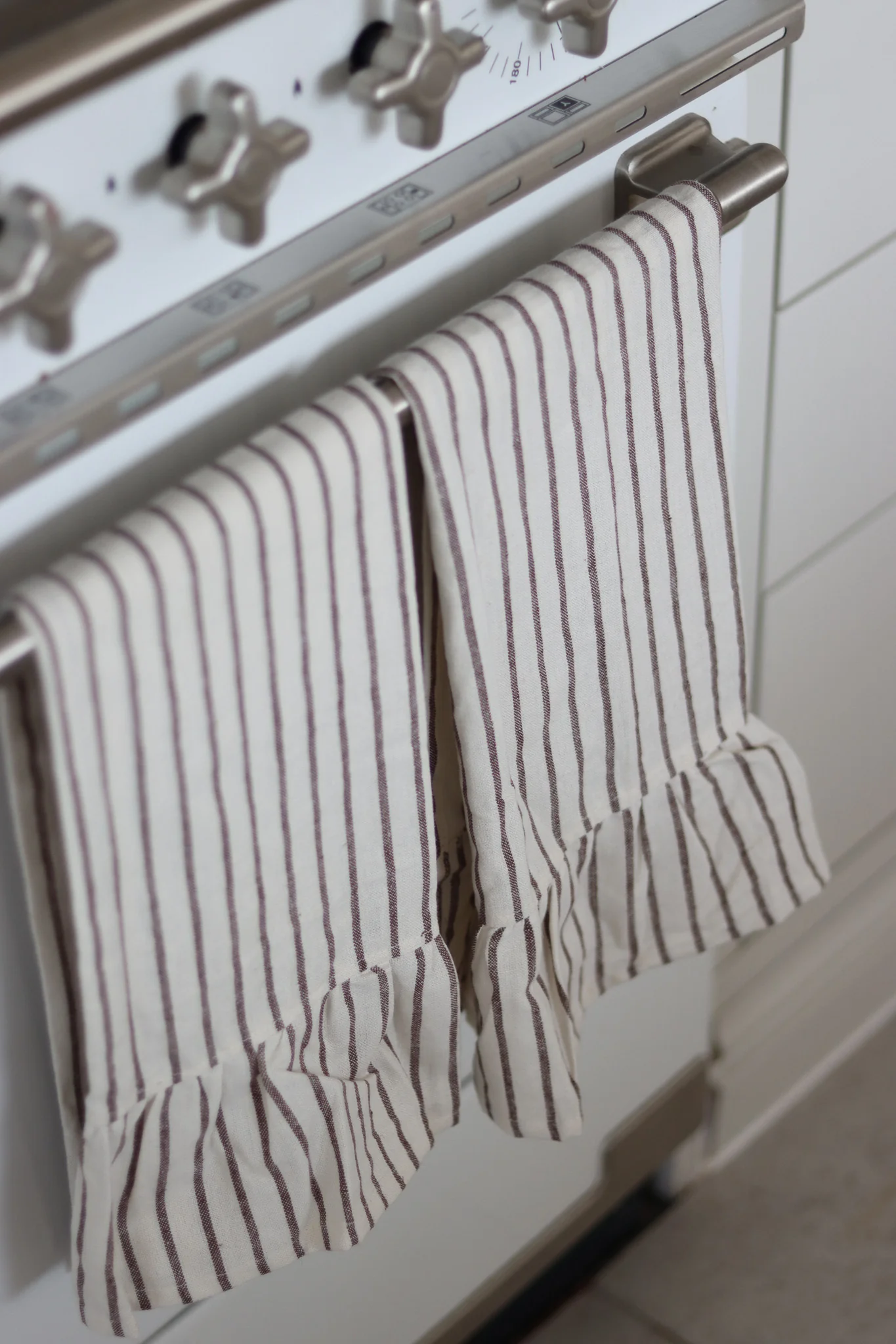 Layer over a kitchen rail or use alongside beige and off-white linens to create contrast. These brown striped tea towels bring warmth to any home setting.
