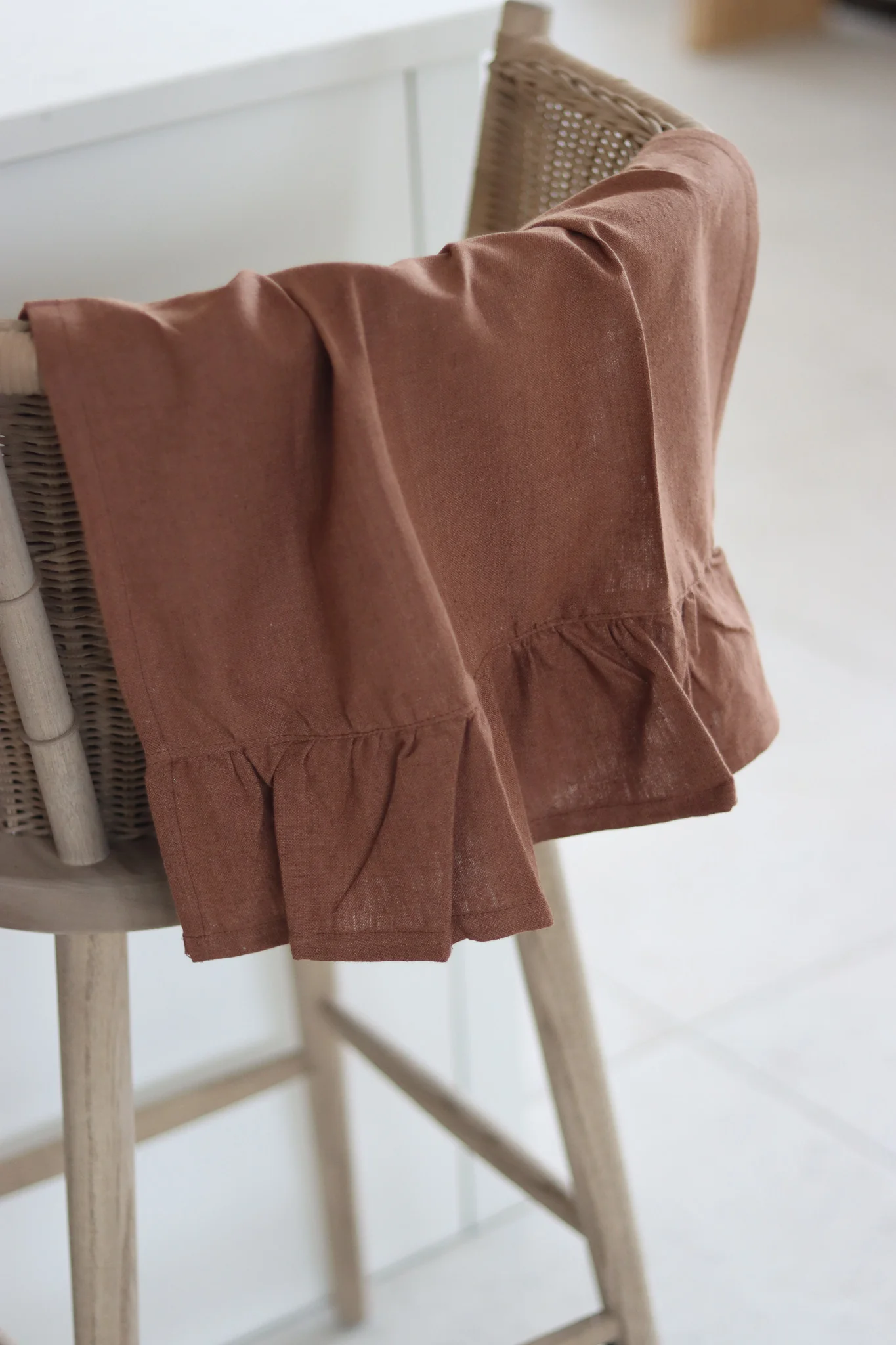 The Set of 2 Ruffled Warm Brown Tea Towels brings natural texture and warmth to your kitchen. Made from a soft linen-cotton blend, they’re durable, absorbent and beautifully finished with a gently ruffled hem.