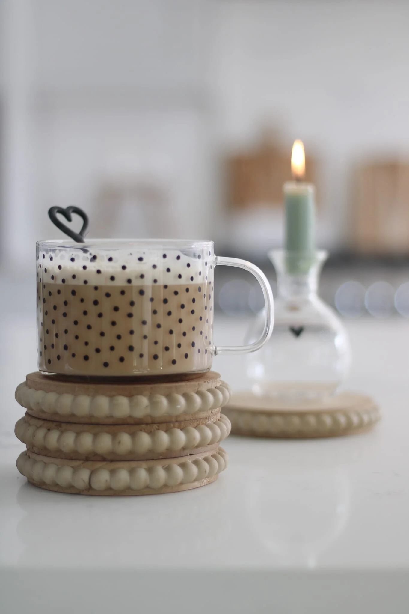 Style this coaster set on a tray or coffee table for everyday use, or pair with cute glass mugs, candle holders or neutral accessories to create a relaxed, shabby chic look.